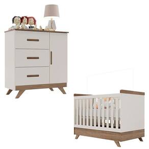 Berço Americano Vitória e Cômoda Infantil Retro Ambiente Maya Off White Carvalho Canaã