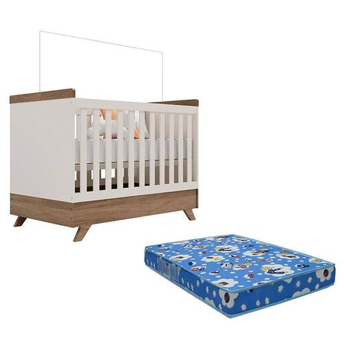 Berço Americano Vitória Off White Carvalho com Colchão Ortobom Carolina