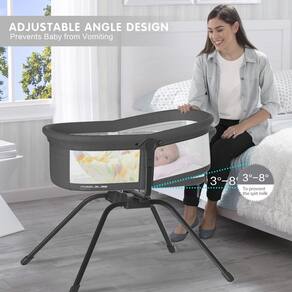 - ?Ângulo de inclinação ajustável do colchão?: O berço para bebês é possível levantar suavemente o colchão sob as costas do bebê para facilitar a respiração caso ele arrote ou em caso de infecções do trato respiratório superior.