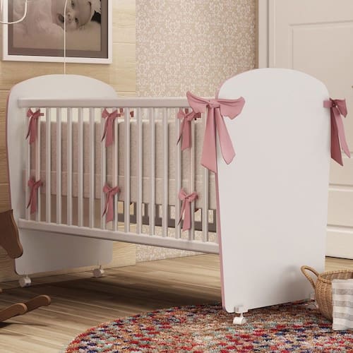 Berço Baby com Rodízios Branco/Rosa - Percasa