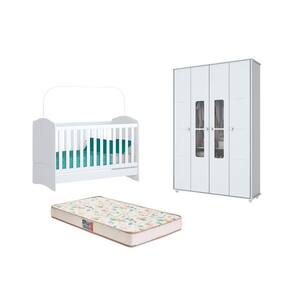 Berço Bala de Menta e Guarda Roupa Aquarela Branco + Colchão