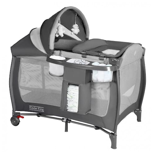 Marca: Kinder King Cor: Cinza Material: Pinho, Tecido Peso do Item: 10,43 quilogramas Dimensões do Item CxLxA: 101,60 x 73,66 x 73,66 centímetros Recomendação de Peso Máximo: 14,97 quilogramas Marca: Não Informado