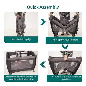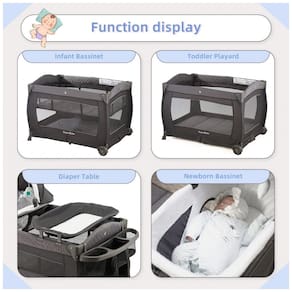 Multifuncional 4 em 1 Playard infantil para mais espaço para brincar ou dormir, berço infantil, berço recém nascido e trocador de fraldas para trocas de fraldas rápidas e fáceis. Fácil de montar Cuidado com a ordem de operação Primeiro puxe os quatro lados e, em segundo lugar, pressione a parte inferior do cercadinho Fácil de dobrar Cuidado com a ordem de operação Em primeiro lugar, puxe o cordão da parte inferior e, em segundo lugar, puxe para baixo os quatro lados do cercadinho Bolsa de transporte portátil Conveniente para os pais carregarem, seu filho também pode dormir e brincar em um cercadinho familiar e confortável a qualquer hora e em qualquer lugar Este parque infantil tem malha respirável para você ficar de olho no seu bebê e fornecer um fluxo constante de ar para ele