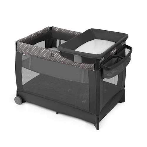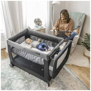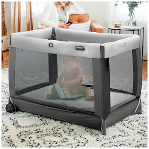 CONVENIÊNCIA TUDO EM UM Lullaby oferece anos de sono confortável e brincadeira com um berço de bebê de tamanho normal, trocador removível e um grande parque infantil, BERÇO INFANTIL REMOVÍVEL O berço elevado e de fácil acesso para recém nascidos para bebês de até 6 kg possui capa de colchão lavável à máquina com zíper para fácil limpeza e revestimento de malha macia no playard para ventilação e visibilidade. SNAP ON CHANGER Trocador de fácil limpeza para uso de até 11 kg com capa limpável fixada na lateral do playard quando não estiver em uso e o conveniente organizador dos pais contém itens essenciais para trocas eficientes de fraldas. GRANDE PLAYARD Transições de berço infantil para cercadinho para bebês e crianças pequenas até 13 kg com um colchão que oferece suporte para brincar e área de dormir à medida que o bebê cresce. As tábuas do colchão removíveis permitem fácil lavagem na máquina. PORTÁTIL EM CASA OU FORA Rodas grandes e emborrachadas proporcionam manobrabilidade suave de cômodo em cômodo em casa, enquanto uma dobra simples com botão e bolsa de transporte incluída criam um berço de viagem conveniente.