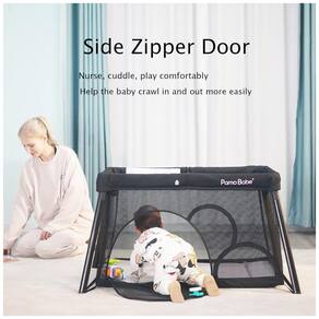 Design trapezoidal estável e quatro cantos inferiores estressados uniformemente para evitar inclinações, garantindo a estabilidade durante as brincadeiras do bebê. Estrutura leve do berço de viagem, fácil de montar, ideal para levar no carro, comboio ou avião durante viagens. Porta com Zíper Lateral: