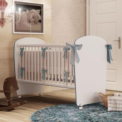 O berço infantil da Móveis Percasa foi desenvolvido para proporcionar o máximo de conforto ao seu bebê. Este berço é fabricado em chapa de MDP de 15 mm e possui bordas de PVC com cantos arredondados. O estrado é feito de chapa inteira, oferecendo maior segurança para o bebê. O berço inclui um kit de rodízios, composto por 2 rodízios com trava e 2 rodízios sem trava, facilitando a movimentação e garantindo estabilidade quando necessário. Certificado pelo Inmetro com o número 003922/2018, o berço apresenta acabamento em semi brilho, que confere um toque elegante ao móvel. As grades são feitas de madeira e revestidas com plástico, adicionando uma camada extra de proteção. O berço também vem acompanhado de um suporte para mosquiteiro. Não acompanha colchão.
