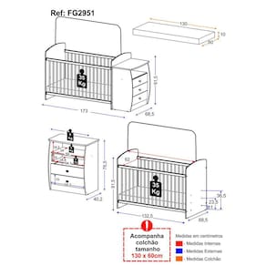 E como sabemos que os pais precisam de praticidade na hora de organizar as coisinhas do bebê, a cômoda acoplada (não é possível montar separadamente) possui 3 gavetas espaçosas e um nicho para armazenar tudo o que for necessário. Certificado pelo INMETRO sob o Selo n° 001073/2017.
