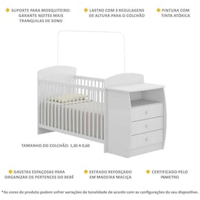 Quer otimizar espaço no quarto das crianças? O Berço Cômoda Rafael é ideal! O berço tem um design moderno, e juntamente com a cômoda deixa o quartinho ainda mais chamorso! A cômoda acoplada vai ajudar a mamãe na organização.