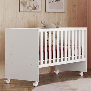 Berço Doce Sonho Reto Branco Com Rodízios - Qmovi Branco Berço Doce Sonho Reto com Rodízios - Qmovi O Berço Doce Sonho Reto foi feito para proporcionar ao bebê mais segurança e aconchego durante o sono. Com um design minimalista, ele completa o ambiente com estilo e modernidade. Acompanha suporte para mosquiteiro, que permite noites mais tranquilas. ESPECIFICAÇÕES: - Estrutura em MDP - Pintura UV - Certificado compulsório do INMETRO 001 881/2020 - Padrão - Estrado em MDF de 6mm - Estrado regulável em três alturas: 1: 36 cm, 2: 48,8 cm, 3: 61,6 cm (altura do estrado em relação a borda superior da grade) - Travessas do estrado em MDF com chapas de 25mm - Grade em MDF - Acompanha suporte para mosquiteiro - 4 Rodízios sendo 2 com travas e 2 sem travas - Colchão recomendado 60 x 130 cm - Não acompanha colchão