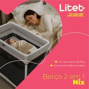 Conforto, seguranca e praticidade para acompanhar o seu bebe em todos os momentos! A linha de bercos da Litet foi desenvolvida para oferecer tranquilidade aos pais e maximo bem-estar aos pequenos. O Berco e Cercado Nix e a solucao ideal para quem busca um produto funcional, leve e facil de transportar, perfeito tanto para o uso diario quanto para viagens curtas ou longas.