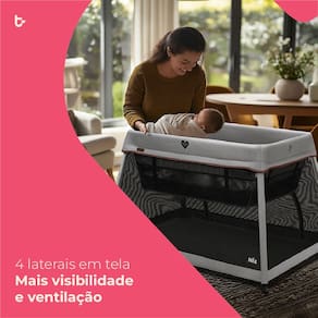 Com design compacto e estrutura leve, o Nix acompanha uma bolsa exclusiva que facilita o transporte e o armazenamento. Seu formato retangular, com laterais em tecido telado, garante excelente ventilacao e ampla visibilidade, permitindo que voce acompanhe o bebe com mais seguranca e conforto.