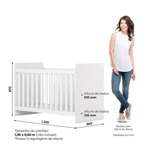 - Suporte para mosquiteiro. Acabamento: Pintura UV Acompanha Cama Auxiliar: Não Acompanha Móbile: Não Acompanha Suporte para Mosquiteiro: Não Altura: 87 cm Altura do Estrado até o Chão: 21,6 cm Ambiente Principal: Quarto de Bebê Berço 3 em 1: Não Certificado: 001 087/2020 codigo_ean: 7900288272089 Complexidade da Montagem: Média: pode ser montado por mais de uma pessoa e/ou necessite de maior conhecimento para montagem Cor: Branco Cor do Produto: Branco Escala de Brilho: Fosco Estilo: Moderno Estrado com Regulagem de Altura: Sim Estrado Regulável em Quantas Posições: 02 Itens Inclusos: 1 Berço, Kit Ferragens e Manual de Montagem Largura: 132,5 cm Linha ou Coleção: Sonho Encantado Manual de Montagem e Instalação: https://product-hub-prd.madeiramadeira.com.br/738433600/documents/01851b72-004e-4637-98ab-bb3055087cff3246767326617591633640478.pdf Marca: Espresso Móveis Material da Grade: MDF Material do Estrado: MDF/MDP Material Principal: MDF/MDP Multifunção Flex: Não Necessita Montagem: Sim Opções de Altura do Estrado: 2 Origem do Produto: Nacional Permite a Utilização de Cama Auxiliar: Não Peso: 19 kg Pintura Atóxica: Sim Portátil: Não Possui Gavetas: Não Possui Pés: Não Possui Portas: Não Possui Prateleiras: Não Profundidade: 66 cm Recomendações de Uso, Manutenção e Limpeza: Para limpeza de seu móvel, use uma flanela limpa e seca. Não utilize produtos químicos que possam danificar o produto. Sistema Anti-Refluxo: Não Sistema de Montagem: Parafusos e Cavilhas Suporta Até (kg): 25 kg Tamanho do Colchão Indicado (L x C): 130 x 60cm Tipo de Berço: Berço Padrão Nacional Tipo de Estrado: Removível Tipo de Grade: Fixa