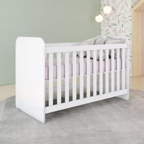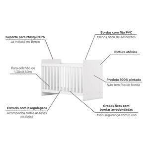 Berço em Mdf e Mdp Sonho Encantado Espresso Móveis Branco. Esse é o Berço Sonho Encantado. Diferenciais do Berço: - Estrado com duas regulagens de altura. - Grades fixas proporcionando mais segurança. - Bordas com fita PVC. - Pintura atóxica. - Suporte para mosquiteiro.