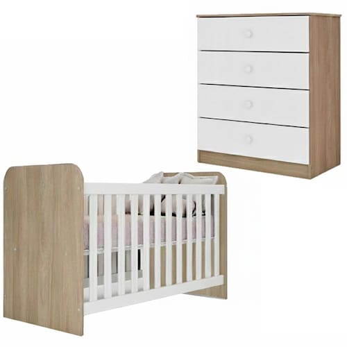 O cuidado e aconchego para os primeiros dias vem através do Berço e Cômoda Labirinto, ideal para o quarto do bebê! Berço aprovado e certificado conforme regulamento do INMETRO (Registro Nº 001 087/2020). Produzidos em MDP e MDF (06/12/15/25 mm) com pintura UV texturizada. O berço é composto por cabeceiras em MDP (12 mm) com bordas arredondadas em PVC, grades fixas em MDF (25 mm) e estrado também em MDF (6 mm), acompanha 2 opções de regulagem de altura no estrado (posição mais baixa 21,6 cm e posição alta 51 cm do estrado ao chão), e é indicado para colchões de tamanho 130 cm x 60 cm. A Cômoda conta com gavetas com corrediças metálicas para abertura suave, puxadores em ABS e design com cantos curvos. NÃO ACOMPANHA COLCHÃO E DEMAIS DECORAÇÕES. Produto será entregue em 02 volumes.