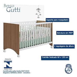 Decore o cantinho do bebê com um móvel que irá garantir conforto e noites tranquilas! Apresentamos o Berço Gutti, desenvolvido pela Móveis Estrela. Acompanha suporte para mosquiteiro, colchão Ortobom na medida 60x130cm, possui 2 regulagens de altura e suporta até 25kg. Ainda conta com um design minimalista e moderno, Kit rodízios, acabamento em pintura uv e estrutura em MDP resistente e de alta durabilidade, garantindo a utilização por muito mais tempo. Confira mais detalhes abaixo, compre com a gente e receba no conforto de sua casa!
