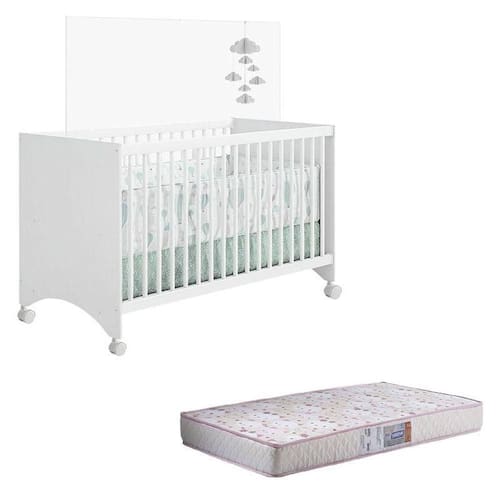 Berço Gutti Branco Brilho com Colchão Gazin Móveis Estrela
