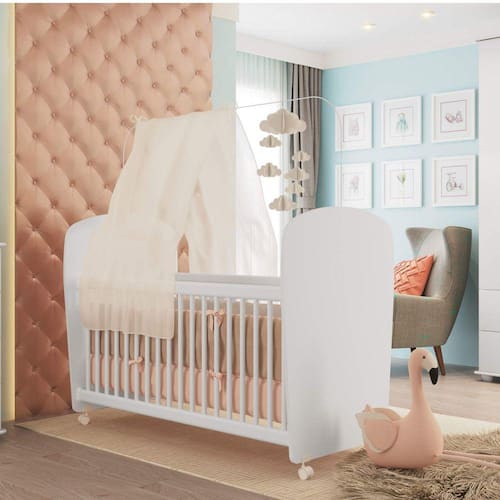 O berço Infantil da Espresso Móveis, foi desenvolvido para seu bebê ter o máximo de conforto. Produzido em chapa de MDP 15mm na cor branca, e borda em PVC com cantos arredondados. Seu estrado é de chapa inteira, proporcionando maior segurança ao seu bebê. Possui rodízios, sem 2 deles com trava e 2 sem trava. Acabamento: Finish Foil Acompanha Cama Auxiliar: Não Acompanha Colchão: Não Acompanha Móbile: Não Acompanha Suporte para Mosquiteiro: Sim - Sem Véu Altura: 92 cm Altura do Estrado até o Chão: 9 cm Altura dos Pés: 4 cm Ambiente: Quarto de Bebê Certificado: 003922/2018 Complexidade da Montagem: Baixa: pode ser montado por uma pessoa sozinha Cor: Branco Cor: Branco Cor Predominante: Branco Escala de Brilho: Semi-Brilho Espaço Entre as Barras das Grades: 5,5 cm Estilo: Moderno Estrado com Regulagem de Altura: Sim Estrado Regulável em Quantas Posições: 02 Garantia do Fornecedor: 03 meses Itens Inclusos: 1 Berço, Manual de Montagem, Kit de Acessórios e Kit de Rodízios. Largura: 68 cm Manual de Montagem e Instalação: https://product-hub-prd.madeiramadeira.com.br/482162/documents/0ea748ac-7a9d-4bb3-8e02-ac13dfcb3518145f97793184796900rev6crod.pdf Material da Grade: Madeira revestida de plástico. Material do Estrado: Pinus/Eucalipto/MDP Material dos Pés: Plástico Material Principal: MDP Multifunção Flex: nao Necessita Montagem: Sim Opções de Altura do Estrado: 2 Permite a Utilização de Cama Auxiliar: Não Peso: 26,48 kg Pintura Atóxica: Sim Possui Gavetas: Não Possui Pés: 04 Possui Portas: Não Possui Prateleiras: Não Possui Rodízio: Sim Profundidade: 133 cm Recomendações de Uso, Manutenção e Limpeza: É recomendado pano macio para limpezas do dia-a-dia, e pano úmido para tirar a poeira. Rodízio com Trava: Sim Sapatas Niveladoras: Não Sistema Anti-Refluxo: Não Sistema de Montagem: Parafusos e Pregos. Suporta Até (kg): 30 kg Tamanho do Colchão Indicado (L x C): 130cm x 60cm Tipo de Estrado: Fixo Tipo de Grade: Fixa