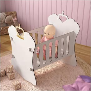 Transforme o momento da brincadeira com um berço encantador, perfeito para acomodar bonecas bebê reborn com muito charme e elegância! Proporcione um cantinho especial para a sua boneca bebê reborn com este lindo berço infantil, feito em MDF de 4mm com acabamento refinado. Ideal para quem busca um acessório delicado e resistente para tornar a brincadeira ainda mais realista.