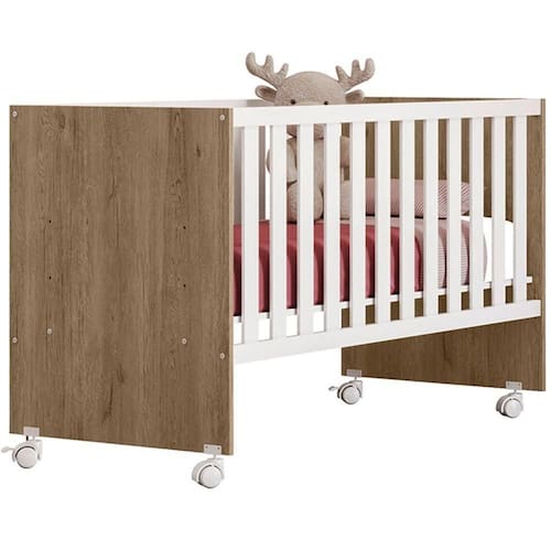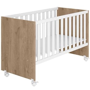 Berço Infantil Reto Com Rodizíos Mdp Doce Mel Carvalho/branco