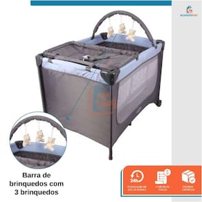 O Berço Joly é ideal para todos os ambientes. Com design inovador e elegante deixando o espaço harmonioso e aconchegante. Acompanha mosquiteiro, barra de brinquedos com 3 brinquedos, trocador e bolsa para transporte. Além de possuir duas alturas para acompanhar o crescimento da criança desde o nascimento até a primeira infância.- Recomendado para crianças até 2 anos;- Sistema de regulagem de altura do colchão (02 alturas) em modo berço na primeira altura e em modo cercado na segunda altura;- Com colchonete removível;- Acompanha mobile;- É possível colocar colchão de berço em cima do colchonete;- Bolsos porta objetos nas laterais para armazenagem;- Trocador com cinto de segurança- Bolsa para transporte;- Pés com rodízios;- Trava de segurança nas 4 laterais;- Certificado pelo INMETRO.Somente utilize a 2ª altura com bebês de no máximo 3 meses / 6 kg e que ainda não são capazes de sentar.1ª altura: Suporta bebês de até 24 meses ou 18 kg;2 ª altura: Suporta bebês de 3 meses ou 6 kg.CARACTERÍSTICAS TÉCNICAS:Material: FerroIdade recomendada: de 0 a 24 mesesPeso suportado: 18 kgPeso Bruto: Aproximadamente 11 kgRef.: 774503