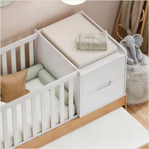 Inclui gavetas e nichos para organização dos itens do bebê;