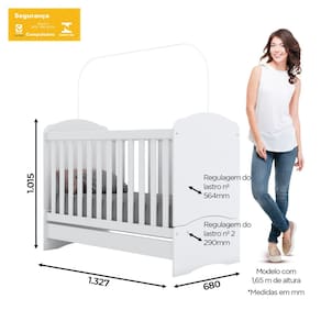 O Berco mini cama Bala de Menta traz todo o conforto e a seguranca que seu bebe precisa para dormir tranquilo. Produzido em MDP, a sustentacao possui revestimento interno e externo com pintura UV, esse revestimento assegura durabilidade ao movel. Alem de suas funcionalidades como, estrado com regulagem de altura, mosquiteiro, o berco Bala de Menta se transforma em Sofa-cama e Mini-cama. Desta forma voce possui 3 moveis em 1 e acompanha todas as fases do seu filho. Ideal para colchao de 0,60cm. Possui altura de 1.015 mm, largura de 1.327 mm e profundidade de 680 mm. A seguranca tambem e outro destaque, pois esta certificado e aprovado pelo Inmetro.