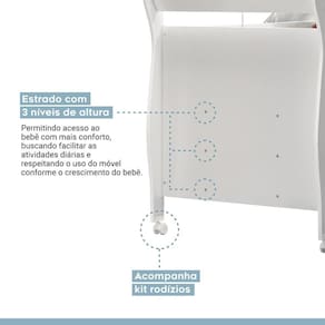 Berço Mini Cama 100% MDF Slim Branco. O seu bebê merece ter um lugar especial para ele aproveitar as noites iniciais de sono, não é mesmo? E por isso, é importante apostar em móveis certeiros como o Berço 100% MDF Slim! O visual clássico confere elegância e aconchego para o quarto do recém-nascido, dando mais liberdade na hora de decorar o espaço para recebê-lo. Ah, a peça ainda conta com 2 regulagens de altura para se adaptar melhor às necessidades do dia a dia. Gostou? Ean: 7898560326417