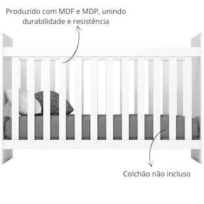 Produzido em MDF/MDP de alta qualidade, com pintura atóxica e acabamento em pintura UV, o Berço Mini-Cama Labirinto é um móvel resistente e durável, que acompanha o crescimento do seu filho com segurança e conforto.