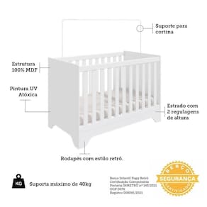O Berço Americano Liam traz uma releitura retrô para o quarto de bebê. Esse berço americano é prático pode ser utilizado também como mini cama ou mini sofá. O berço é produzido em 100% MDF com bordas arredondadas e acabamento em pintura UV atóxica, oferecendo mais segurança para toda família e um estilo único para o berço, com o charme dos pés no estilo retrô. Também possui certificado do INMETRO e um suporte para mosquiteiro.
