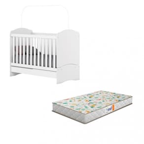 Características Berço: Estrutura 100 MDF Acabamento em P.U. e U.V. Berço com 2 estágios de regulagem de altura Uma Mini Cama Certificado pelo INMETRO 009 196/2014 Inmetro Berço suporta peso de até 25Kg Tamanho do colchão indicado 60cm x 130cm.