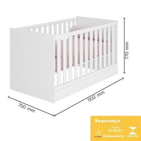 Berço Mini Cama Doce Sonho Branco - Qmovi Branco Berço Mini Cama Doce Sonho - Qmovi O Berço Doce Sonho foi projetado especialmente para oferecer conforto e ao bebê. Com um design clássico e delicado, ele garante beleza e aconchego para o ambiente. Ele acompanha o desenvolvimento do seu filho se transformando em uma linda mini cama. O berço possui certificado do INMETRO, o que proporciona noites mais tranquilas e seguras. Uma escolha de amor e cuidado com o seu bebê. ESPECIFICAÇÕES: - Estrutura em MDP - Pintura UV atóxica - Padrão americano - Grades fixas - Estrado e travessas em MDF - Estrado regulado em 3 alturas: 1- 35cm, 2- 48cm, 3- 61cm - Acompanha suporte para mosquiteiro - Se transforma em mini cama - Certificado compulsório do INMETRO 007189/2017 - Colchão recomendado 70x130cm - Não acompanha colchão