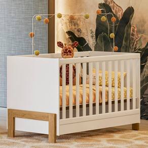 Berço Mini Cama Fantasia - Qmovi Estrutura em MDP Pintura UV Padrão americano Certificado pelo INMETRO 007189/2017 Estrado regulável em três alturas Estrado em MDF de 6mm e travessas em MDF de 25mm Grades fixas feitas em MDF de 12mm e 25mm Pode ser transformado em mini cama Acompanha suporte para mosquiteiro Pés em MDF de 25mm Colchão recomendado: 130 x 70 cm
