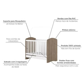 - Pintura atóxica. Acabamento: Pintura UV Acompanha Cama Auxiliar: Não Acompanha Móbile: Não Acompanha Suporte para Mosquiteiro: Sim - Sem Véu Altura: 101,5 cm Altura do Estrado até o Chão: 26,6 cm Ambiente Principal: Quarto de Bebê Berço 3 em 1: Sim Certificado: 009 196/2014 codigo_ean: 7900288246233 Complexidade da Montagem: Média: pode ser montado por mais de uma pessoa e/ou necessite de maior conhecimento para montagem Cor: Rústico/Branco Cor do Produto: Rústico/Branco Escala de Brilho: Fosco Estilo: Moderno Estrado com Regulagem de Altura: Sim Estrado Regulável em Quantas Posições: 02 Itens Inclusos: 1 Berço, Kit Ferragens e Manual de Montagem Largura: 132,7 cm Linha ou Coleção: Lápis de Cor Manual de Montagem e Instalação: https://product-hub-prd.madeiramadeira.com.br/577620041/documents/aa4f543e-452b-4f46-a9f8-b652ba1180693246128326617591558661925.pdf Marca: Espresso Móveis Material da Grade: MDF Material do Estrado: MDF/MDP Material Principal: MDF/MDP Multifunção Flex: Não Necessita Montagem: Sim Opções de Altura do Estrado: 2 Origem do Produto: Nacional Permite a Utilização de Cama Auxiliar: Não Peso: 30 kg Pintura Atóxica: Sim Portátil: Não Possui Gavetas: Não Possui Pés: Não Possui Portas: Não Possui Prateleiras: Não Profundidade: 68 cm Recomendações de Uso, Manutenção e Limpeza: Para limpeza de seu móvel, use uma flanela limpa e seca. Não utilize produtos químicos que possam danificar o produto. Sistema Anti-Refluxo: Não Sistema de Montagem: Parafusos e Cavilhas Suporta Até (kg): 25 kg Tamanho do Colchão Indicado (L x C): 130 x 70cm Tipo de Berço: Berço Mini Cama Tipo de Estrado: Removível Tipo de Grade: Fixa