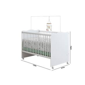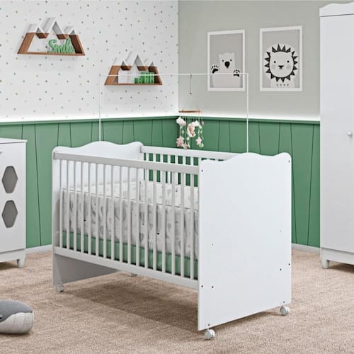 Berço Mini Cama Lolly com Rodízios 1,32cm X 0,77cm X 0,95cm Branco. Prático e charmoso todo branquinho, o Berço Lolly possui 2 regulagens de altura para o estrado, acabamento em tinta atóxica bordas pintadas e arredondadas que proteje o bebê. As grades em madeira arredondada são revestidas com plástico resistente, o estrado é firme e todos os espaçamentos são dentro da norma. Berço Lolly, possui espaço para colchão de 130 x 70 cm. Neste momento tão especial, a segurança do bebê deve ser prioridade, por isso a Móveis Estrela produz seus berços respeitando a norma de segurança da ABNT, que impedem os riscos e favorecem a segurança do bebê e o bem-estar da família. Grade em Madeira revestida Pintura atóxica Mosquiteiro Aramado com pintura epóxi Acompanha grade de proteção para montagem da mini cama Montagem com parafusos e porca cilíndrica