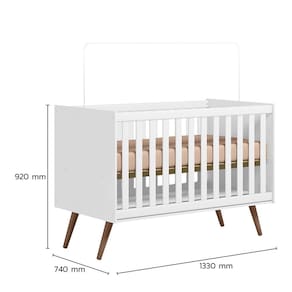 Dimensões: Tamanho do Berço (L x A x P): 74 x 92 x 133 cm Tamanho do Colchão (L x A x P): 70 x 10 x 130 cm