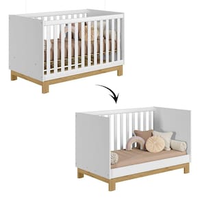 Características Estrutura em MDP Acabamento em pintura UV Acetinada Atóxica Grades de proteção fixas feitas em MDF Estrado em MDF regulável em três alturas Pés em MDF de 25mm Acompanha suporte para mosquiteiro Berço 2 em 1 - Pode ser montado no modelo Mini Cama ACOMPANHA COLCHÃO 130 X 70 Suporta até 40 kg.