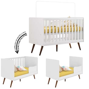Berço mini cama 2857, produzido em MDF de 15 mm, grade em MDF com pintura UV atóxica não fazendo mal para a saúde do bebê, bordas arredondadas com acabamento em pintura PU, berço vira mini cama após transformação em mini cama, disponibiliza uma lateral de proteção, acompanha suporte para mosquiteiro (mosqueteiro não incluso no produto)