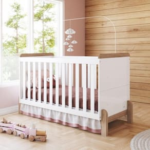 Berço Mini Cama Yuri Espresso Móveis Branco/Jequitibá. Esse é o Berço Yuri Diferenciais do Berço: - 2 em 1: Berço e Minicama. - Estrado com duas regulagens de altura. - Grades Fixas com Bordas Arredondadas. - Cantos Arredondados. - Pés em MDF Revestidos. - Pintura Atóxica.