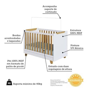 Berço Minicama 4 em 1 Americano 100% Mdf Levy Espresso Móveis Branco Brilho/Amêndoa. Crie um ambiente acolhedor e cheio de charme com móveis da linha Levy. Com os pés em formato de palito de picolé, ele une charme e diversão, a linha Levy traz um toque nostálgico, perfeito para quem busca elegância atemporal. O Berço é fabricado 100% em MDF e possui pintura atóxica. Seu estrado possui altura regulável, e as grades e molduras possuem bordas arredondadas e laqueadas, proporcionando uma sensação agradável ao toque. Acompanha suporte de cortinado. Ideal para pais que valorizam design clássico e boa qualidade.