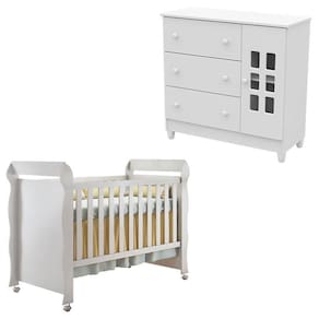 Berço Mirelle e Cômoda Infantil Mariah Branco Brilho - Carolina