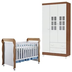 Berço Mirelle e Guarda Roupa Mariah 3 Portas Branco Acetinado Amadeirado Carolina