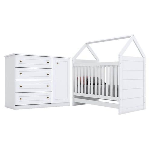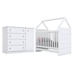 Berço Montessoriano e Cômoda Infantil Americano Branco Henn