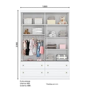 Guarda Roupa Infantil Americano 4 Portas Branco Henn