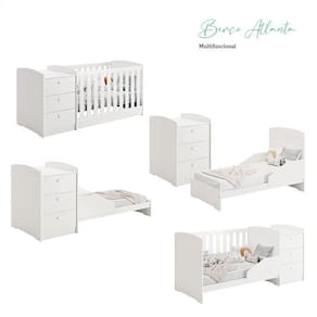 Berço Multifuncional Atlanta e Cômoda Infantil Americano Ambiente Branco Fosco Henn - Reller