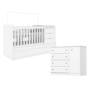 Berço Multifuncional Cleo e Cômoda Infantil Americano Branco Fosco - Carolina