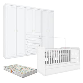 Berço Multifuncional Cleo e Guarda Roupa Infantil 6 Portas Americano Branco Fosco com Colchão Gazin - Henn