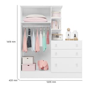 Guarda Roupa com Cômoda Doce Sonho Branco Brilho Qmovi