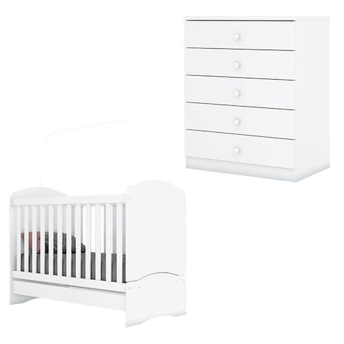 Berço Nacional e Cômoda Infantil Bala de Menta Branco - Henn