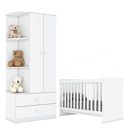 Berço Nacional e Guarda Roupa Infantil Labirinto Branco Brilho - Henn