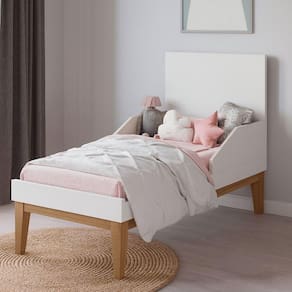Os pés em madeira garantem estabilidade e firmeza ao móvel, enquanto as grades fixas proporcionam segurança e tranquilidade no dia a dia.